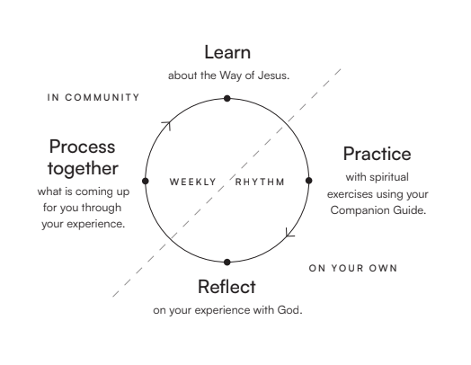 Hver samling består av fellesskap, refleksjon, en inspirerende videoundervisning og gode samtaler. Det er også lagt opp til en praktisk respons til det du har lært, og refleksjon rundt praksisen mellom hver gang. Målet er å få et dypere liv med Gud.
